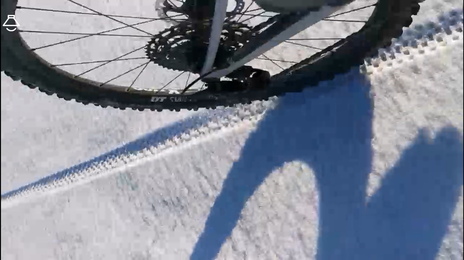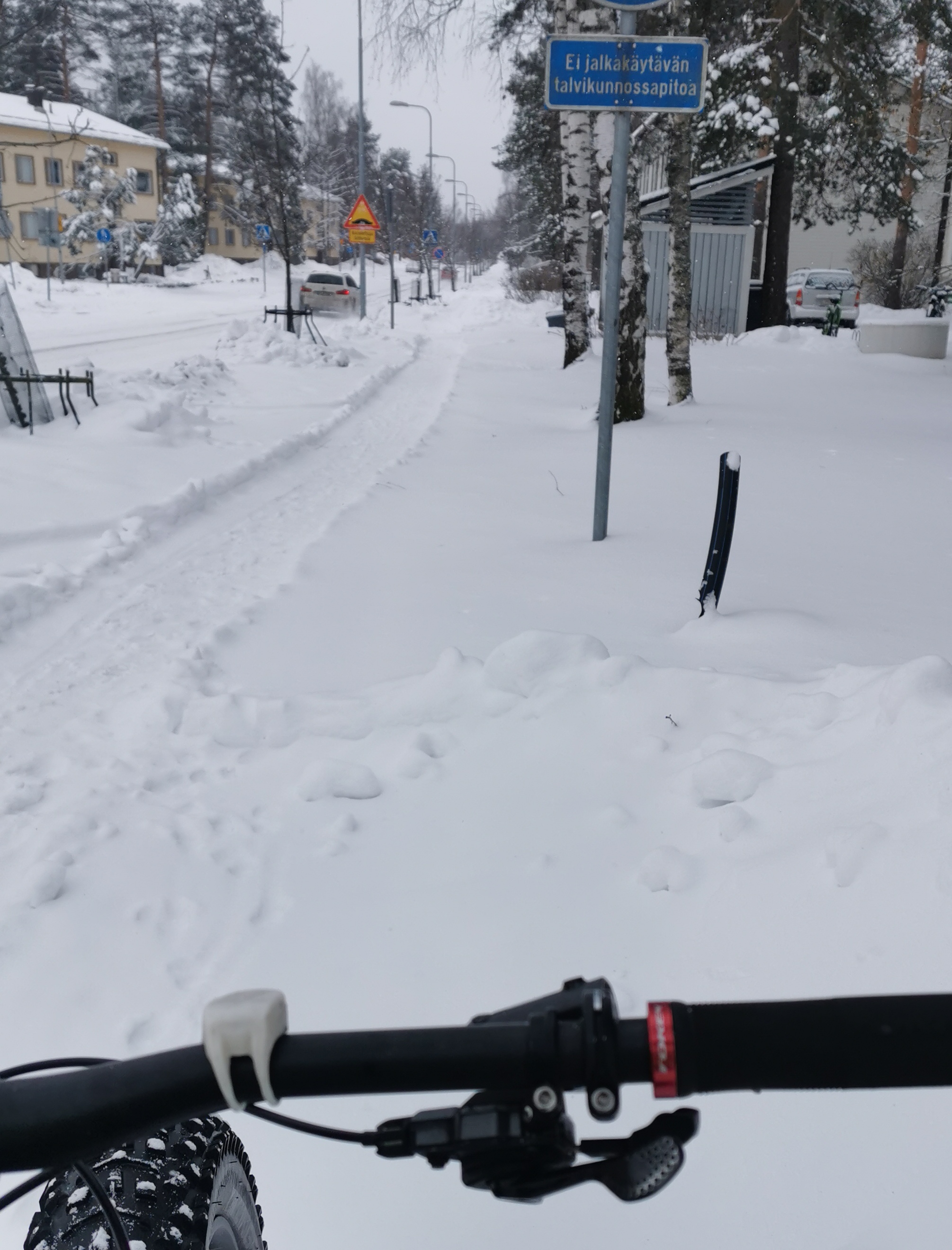 "Uudessa: tuoreet pyörän jäljet tuoreessa lumessa.."