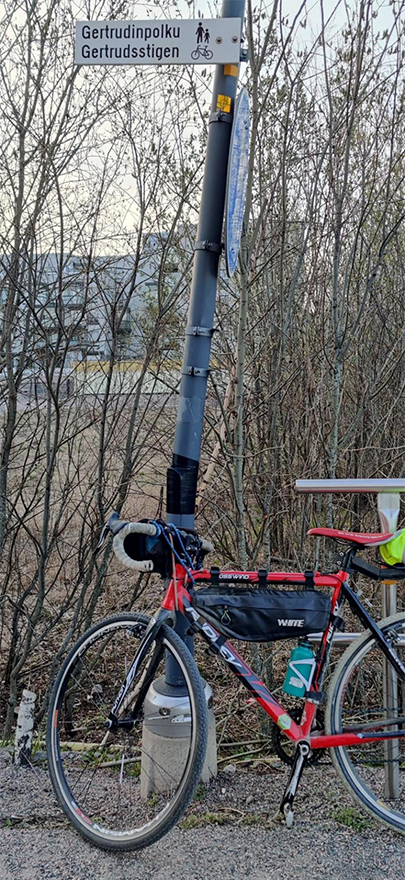 ^kävin siellä minäkin. Getrudinpolun kyltti on ilmastointiteipin varassa.