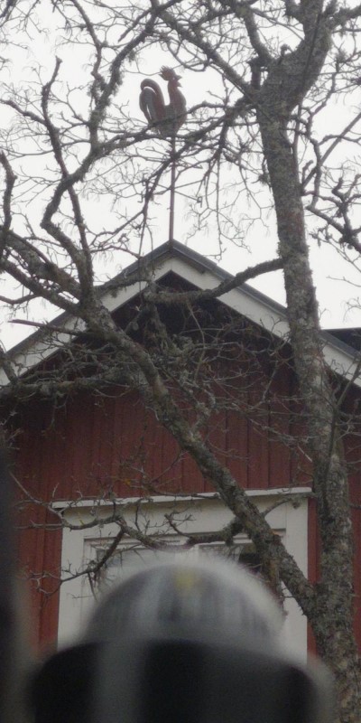 Seuraavaksi katolla oleva perinteinen kukkoaiheinen tuuliviiri.