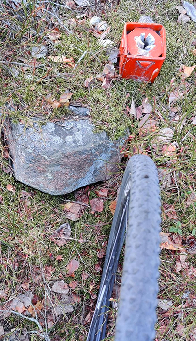 Seuraavaksi haussa kirkkaan värinen rajapyykki (ei rajakiviä, ruosteenruskeita teräsputkia jne.).