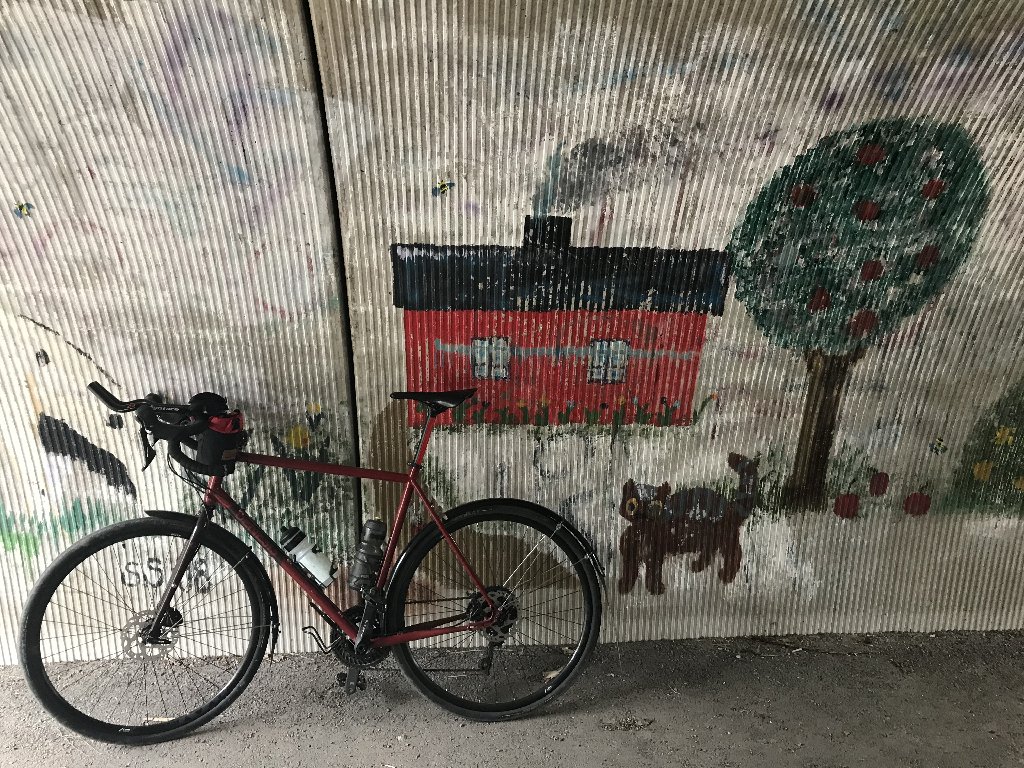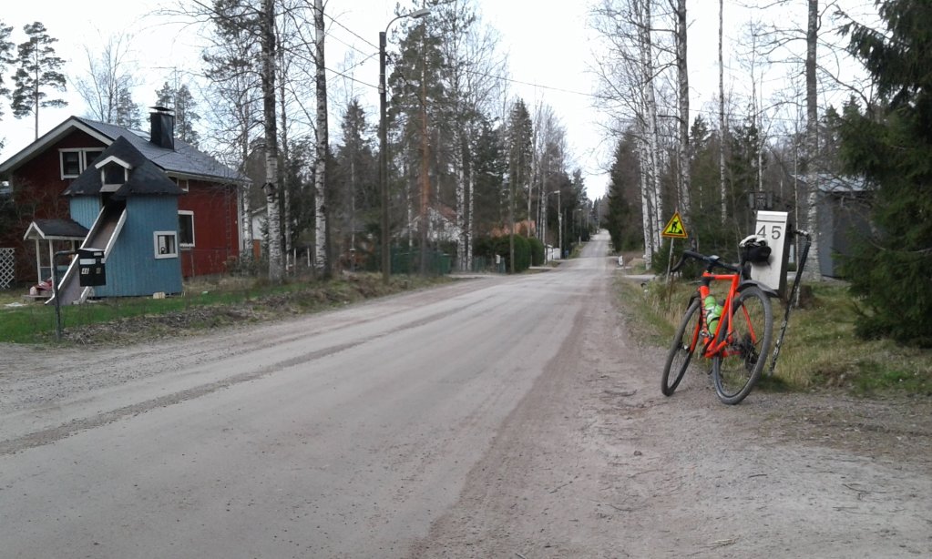 Keski-Uudeltamaalta löytyy varmasti lukuisia suoria hiekkateitä joiden varrella on pientaloasutusta, mutta on vain yksi Hernemäentie jonka varrella voi gravel-lenkillään nähdä liukumäellä varustetun leikkimökin!
