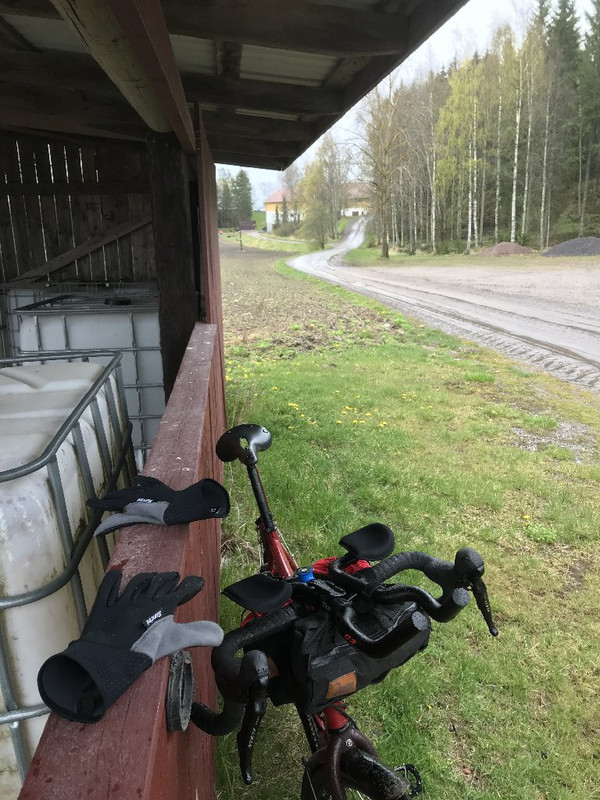 Pyöräilylakin nosto rastin hausta! Itse olin jo *melkein* ajamassa Nurmijärven suuntaan, mutta luin taivaalla näkemiäni tummia pilviä siten että päätinkin kääntää kohti Pornaisia. (Ratkaisu vaikutti oikein toimivalta vielä siinä vaiheessa kun tuli aika kääntyä kotiinpäin...)