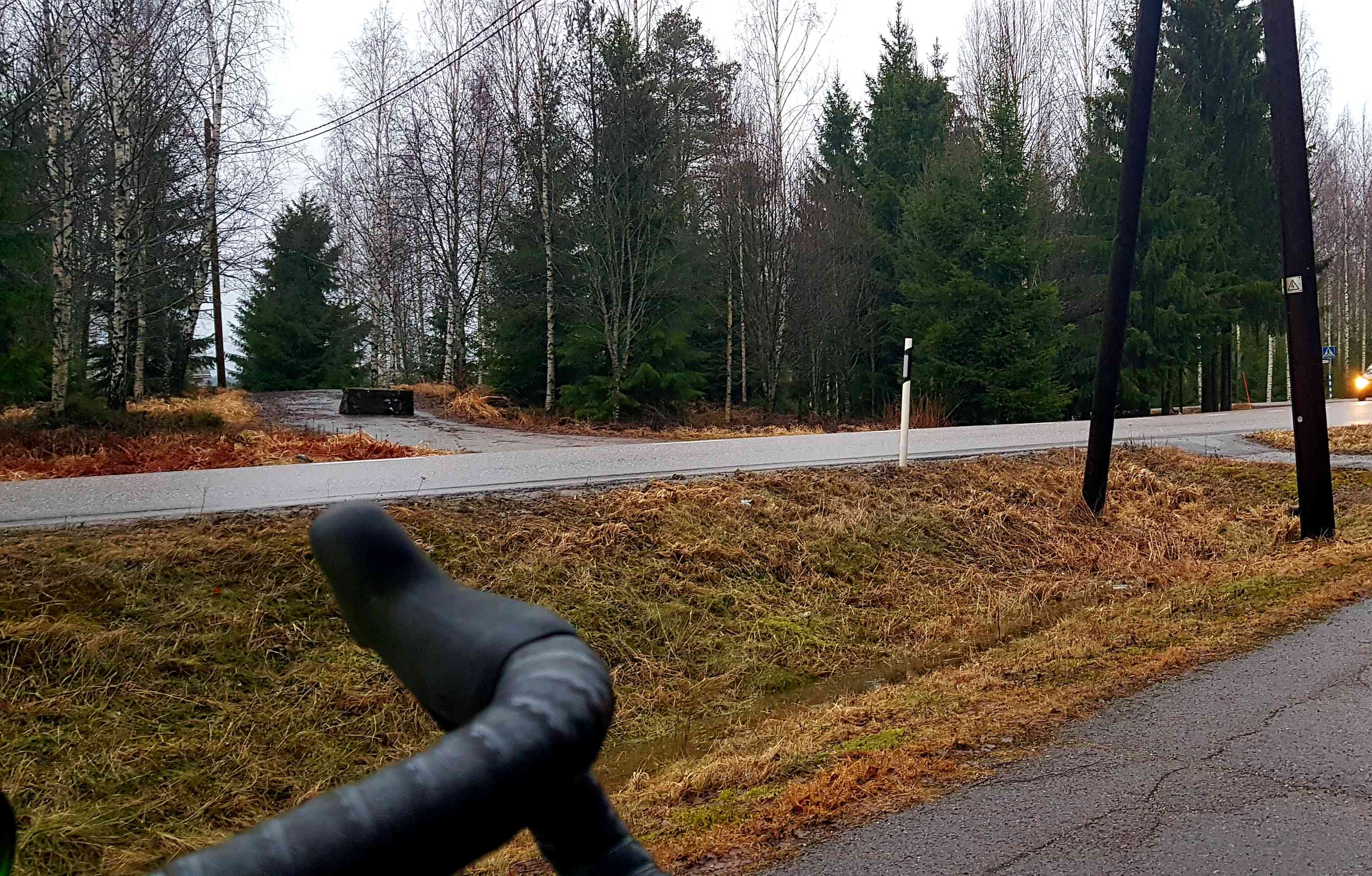 Läheltä menee hyvinkin suosittu maantiepyöräilyreitti. Tämä on mukava yhdyspätkä (eli luonteva läpiajettava reitti) kestopäällystettyjen teiden välillä. Google maisema on kuvasta poikkeava. Ja jos oikein muistan niin tienvarrella taitaa ainakin jonkin armeijan vanha maastokuorma-auto olla näkyvissä.