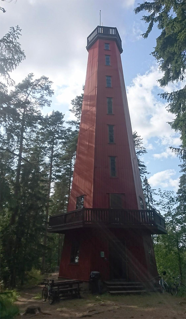 Vähän näyttää Kaukolanharjun näkötornilta Tammelassa Saaren Kansanpuiston nurkilla pyöräilymatkan päässä mökiltä.