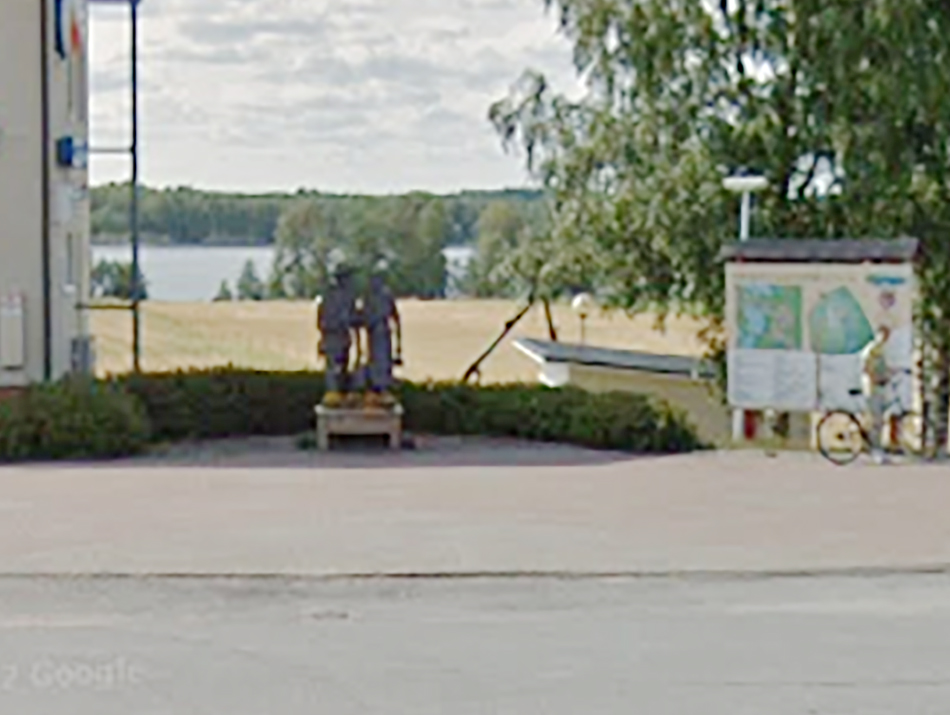 Juuri siinä. Kyseisestä patsaasta löytyy useita kuvia, mutta huonosti tietoa. Paremman puutteessa arvaisin että se Kinnulan oman mestarin Vihtori Storckin teos.