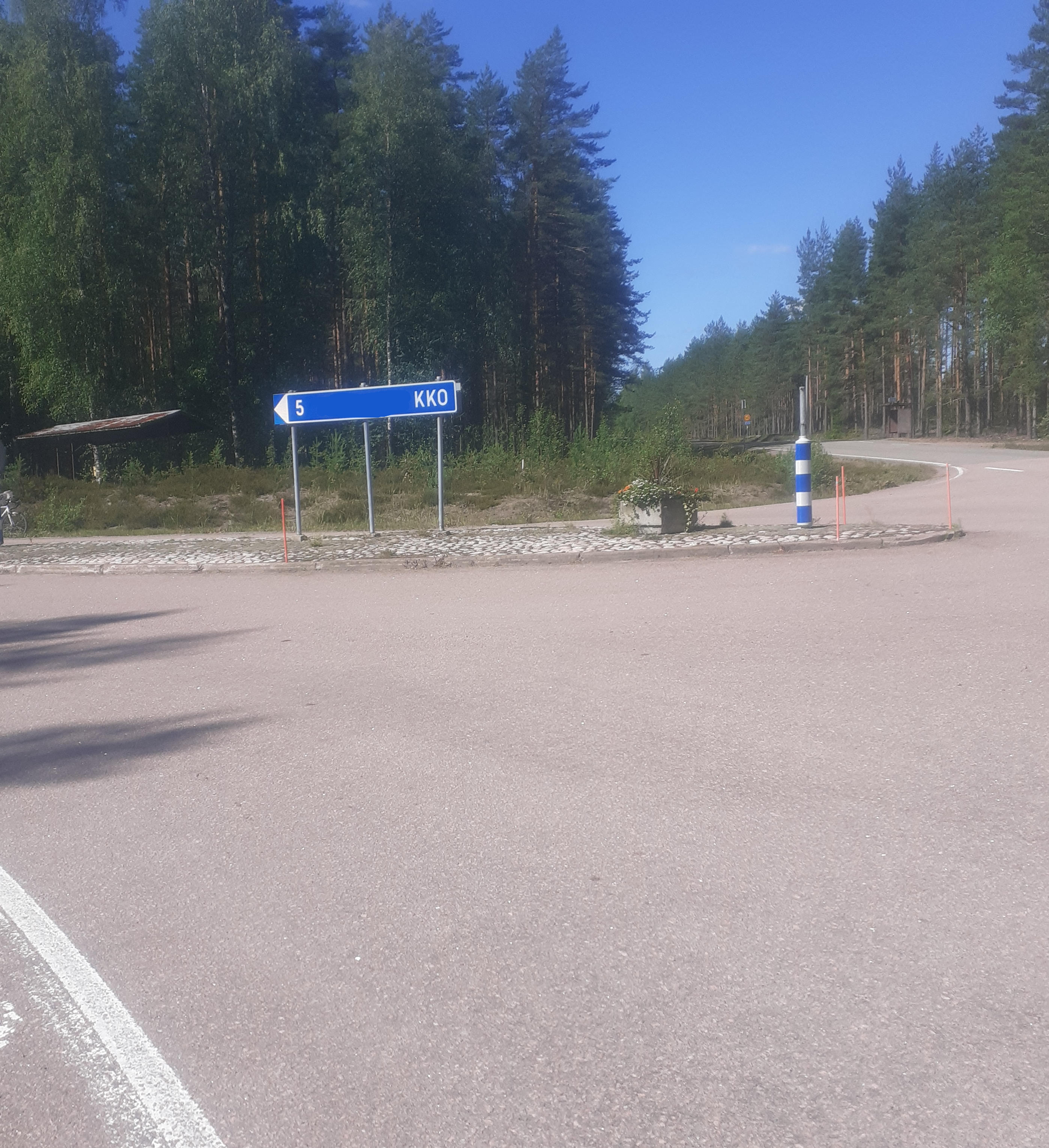 Virolahdella teiden 3511 ja 3513 risteys, museotieltä kirkolle, tässä. Rasti 985. Tonni lähestyy, pitäisikö juoda kakkukahvit sitten?