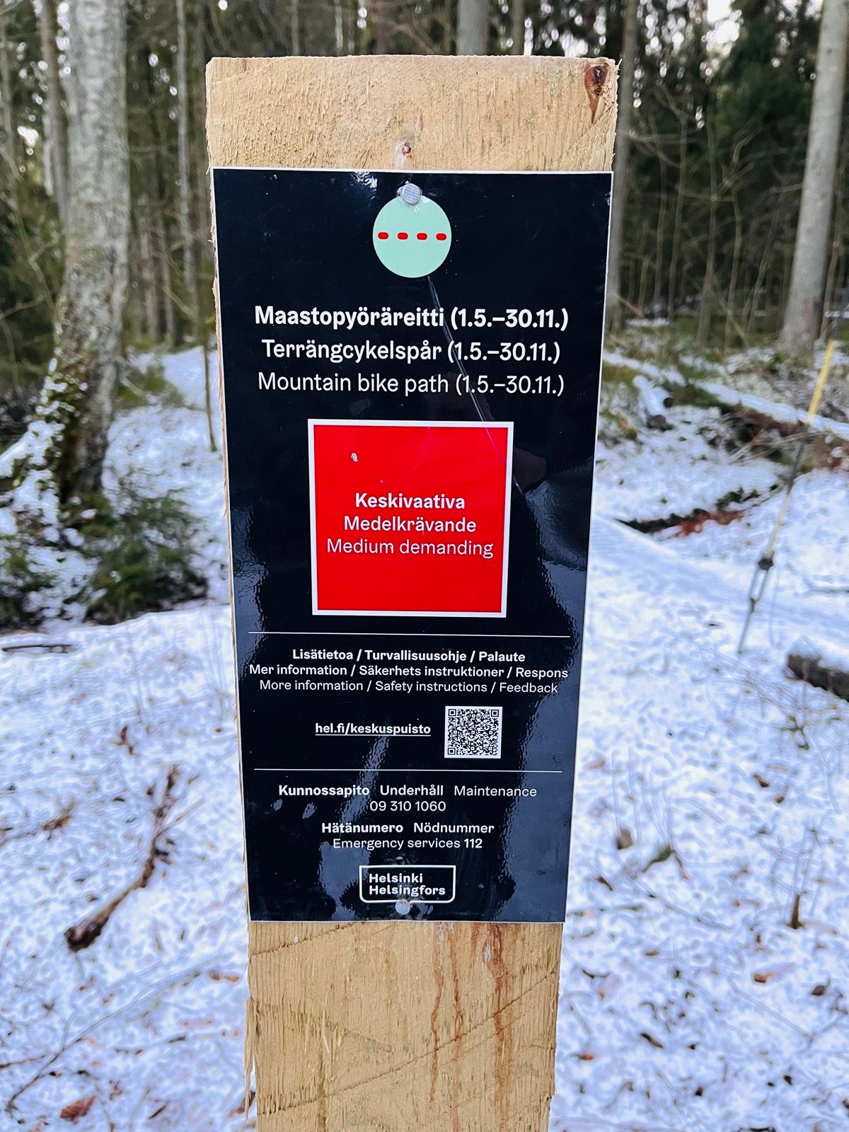 Saadaan tuosta ainakin jupinaa aikaiseksi kun täysin edesvastuuttomat maastopyöräilijät käyttävät suljettua reittiä, kylväen pelkoa ja pakokauhua keskuspuistoon. Ehkä se "ei talvikunnossapitoa" olisi ollut fiksumpi..