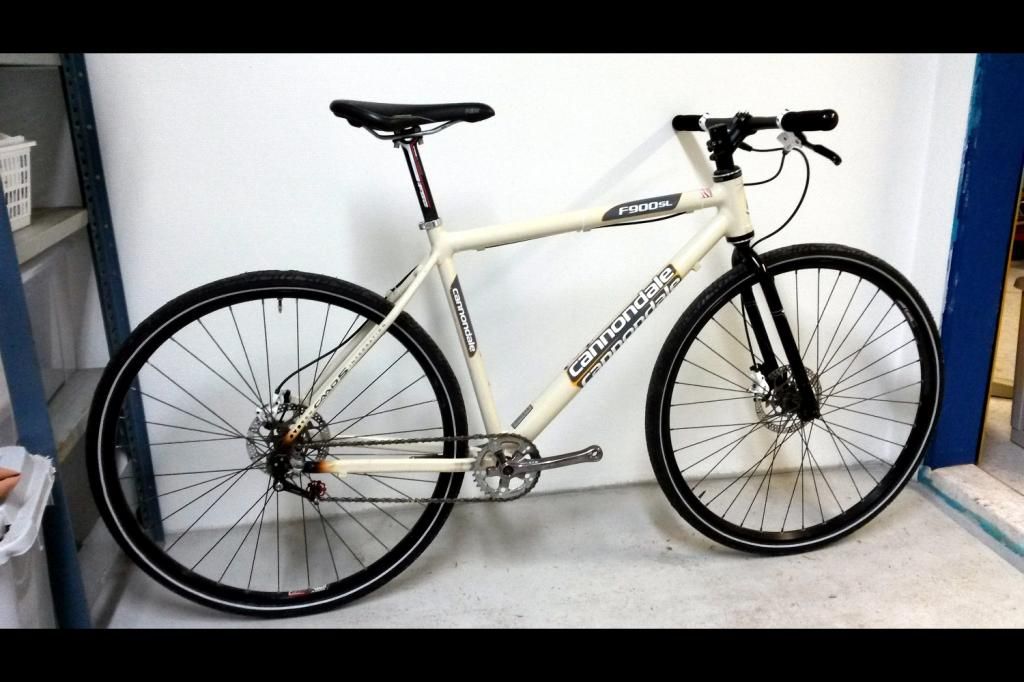 Tämä F900SL kävi kaverilla hybridi/gg/tms kokeilussa ja palautui maasturin tieltä takas mulle mietittäväksi mitä tästä rakentelis. Oikeestaan heti tuli ajatus 28" sinkulasta valkeilla kiekoilla, bullhornilla ja levyillä. Valkeat kiekot on edelleen kattelussa, bullhorni hyllyssä ja Cannari kasattu keräilyosista jota sattu hyllyssä olemaan. Jospa ehtis jonku testilenkin ajaa ennen lumien tuloa.