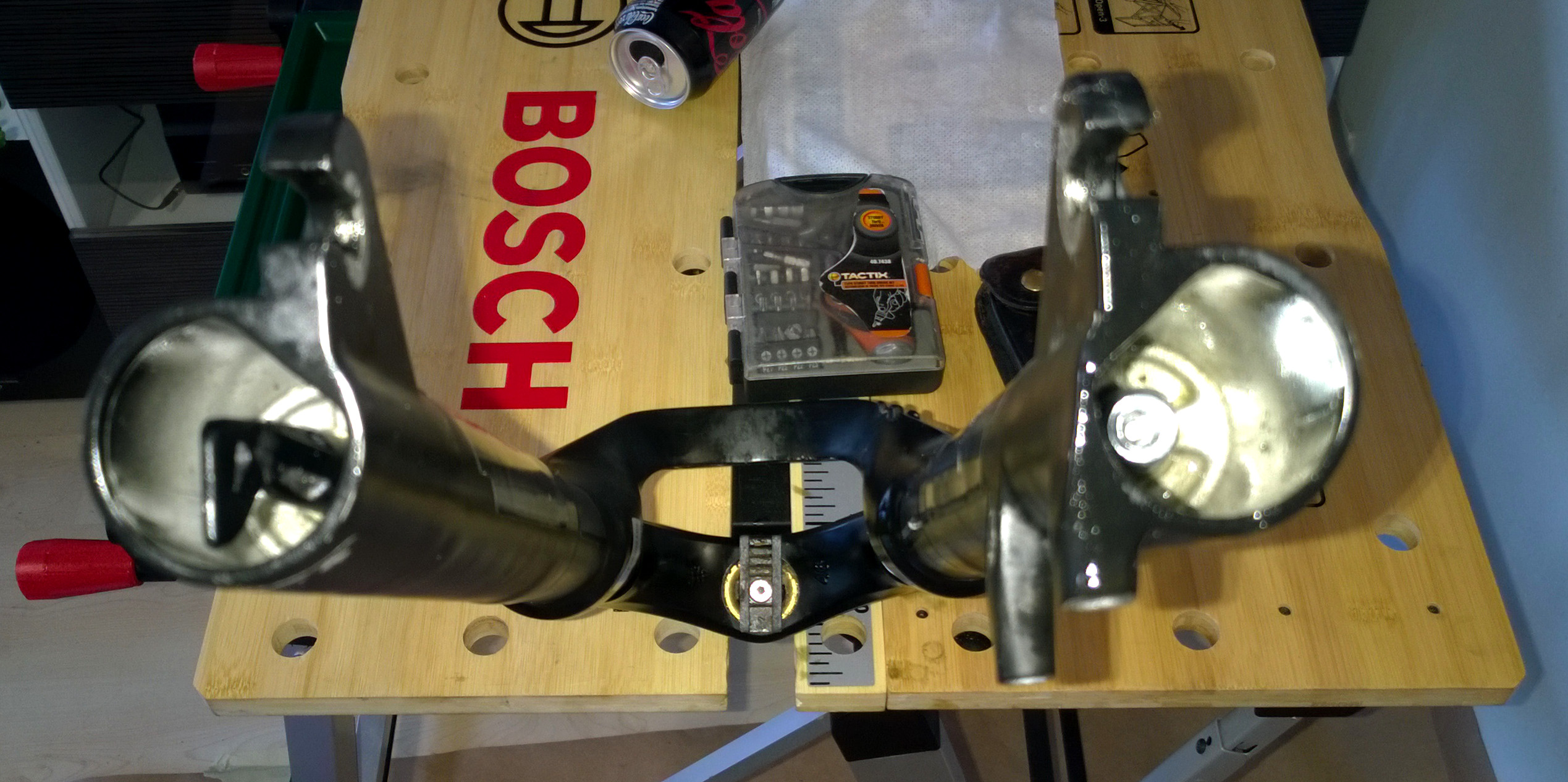 Haarukka on nyt kasassa ja joustomatka piteni sen 20mm, mutta en ole ehtinyt vielä saamaan kiinni pyörään kokeiltavaksi.