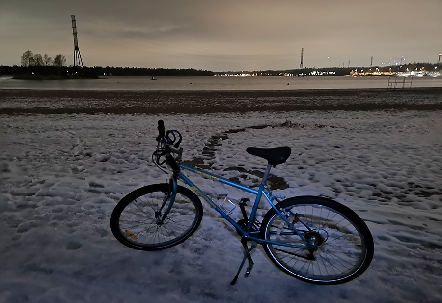 Jos kelpaa, niin seuraava rasti olisi pyörä lumikasassa.