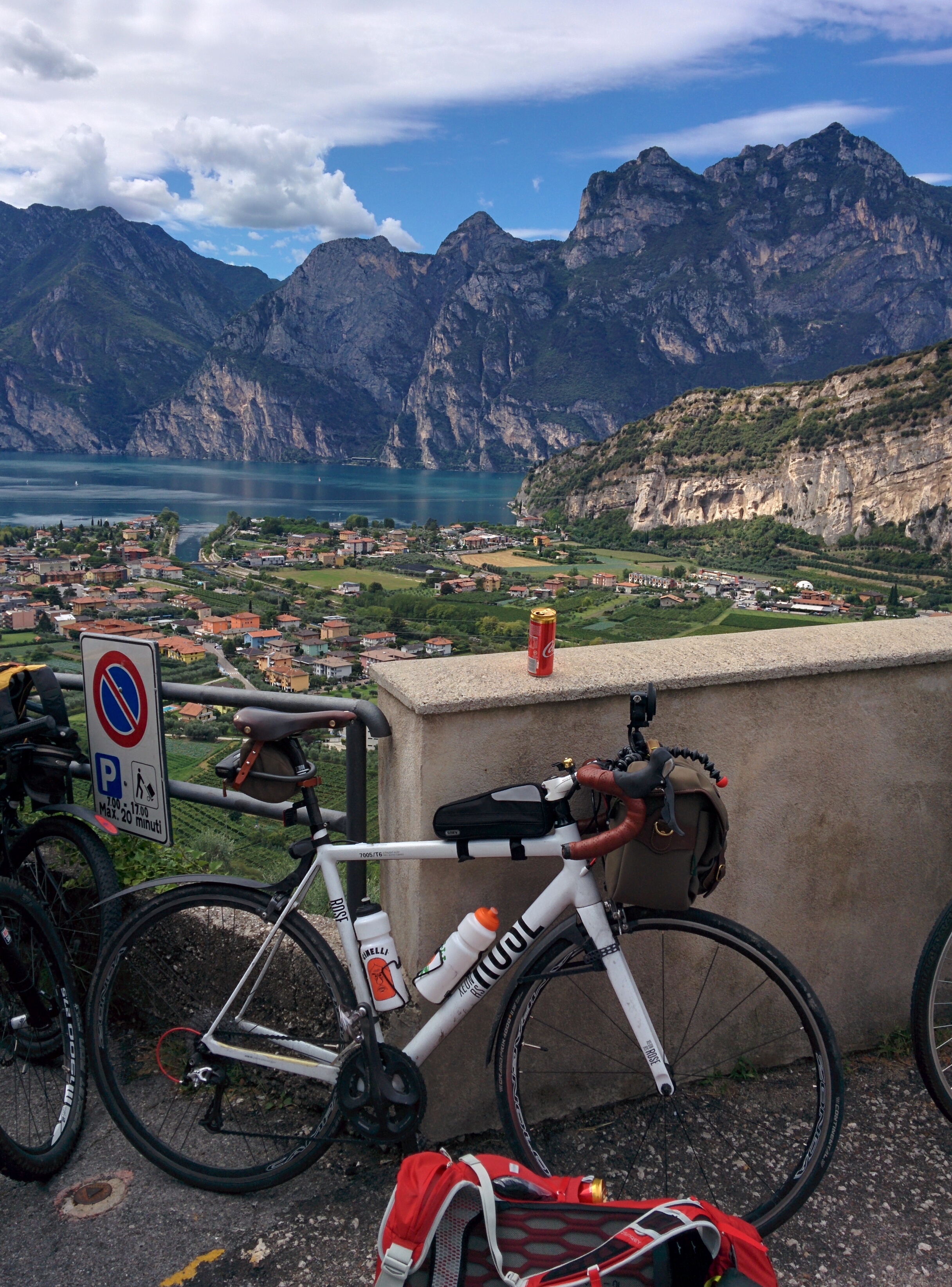 - Runko on 5 vuotta vanha Rose Xeon RS (alumiinia kuituhaarukalla), johon tuli vaihdettua voimansiirto tätä reissua varten (2 * 10-vaihteinen): Ultegra 50-34 175mm kammet, Dura-Ace press-fit keskiö, A600 polkimet, 9(/10)-vaihteinen pitkä XT-takavaihtaja, 11-36T XT-takapakka, KMC DLC -ketju, Campa Zonda -kiekot, 25mm Conti GP4000SII:t.