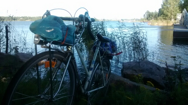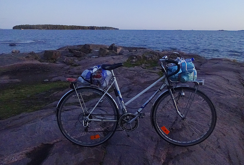 Cyclocross Flying Finn elementissään Larun etelärannan kallioilla .. Melkki näkyy merellä. Meniköhän 10km sääntö rikki, ainakin jos maata pitkin mitataan ..
