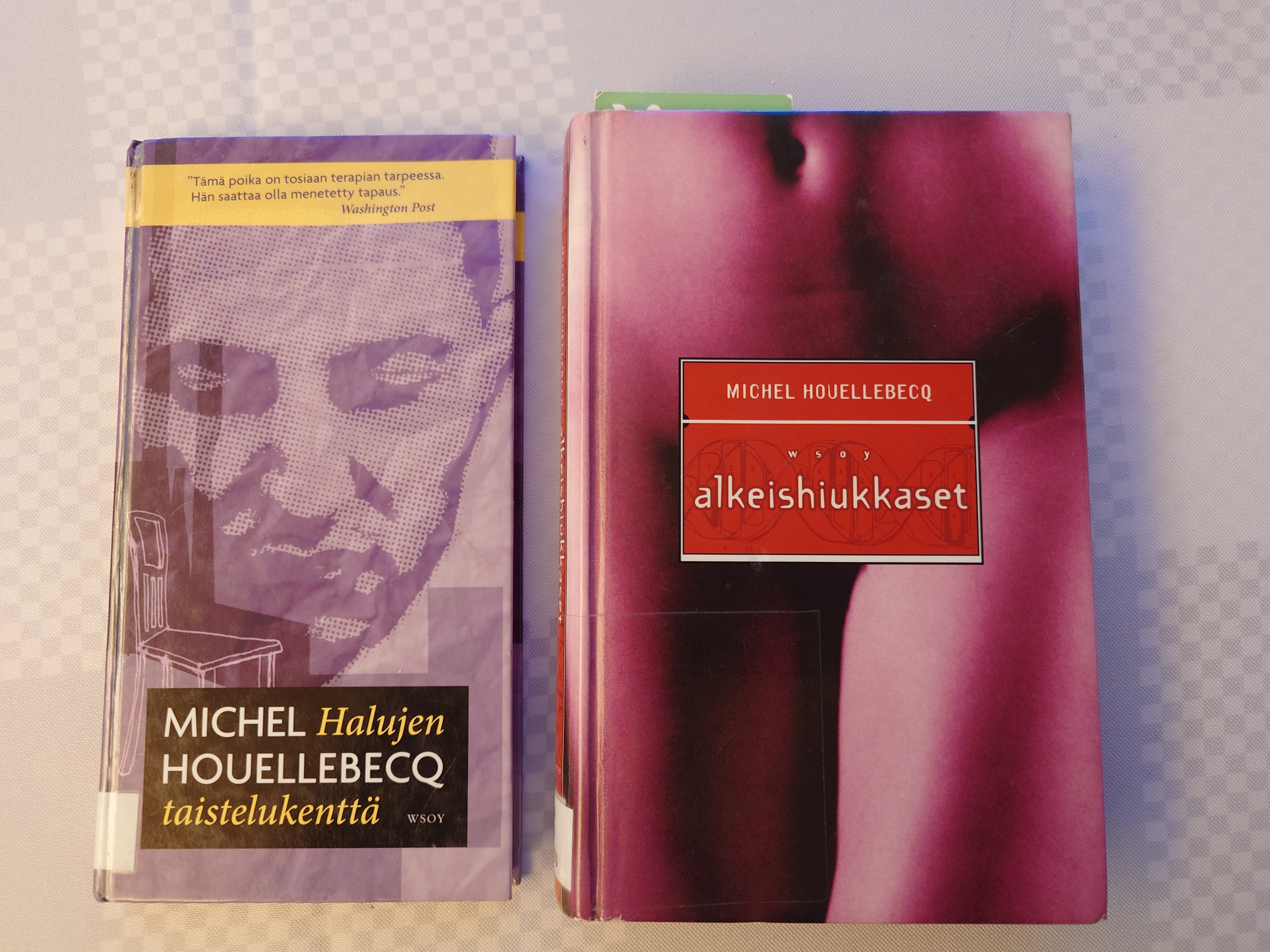 Onneksi nämäkin olin hakenut kirjastosta mukaan. En muistanut kun olin pakannut poikaseni kirjojen sekaan. Halujen taistelukenttä luettu ja Alkeishiukkaset aloitettu. Sanoisin että erittäin mielenkiintoinen kirjailija.https://pic.useful.fi/9-fi9ksqa.jpg