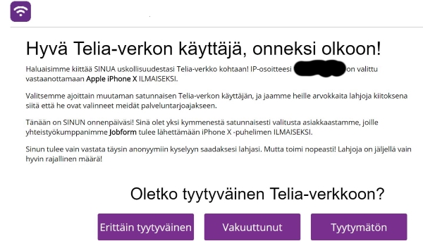Vastaisiko ”Telian” kyselyyn ja saisi "ilmaisen" i-luurin?