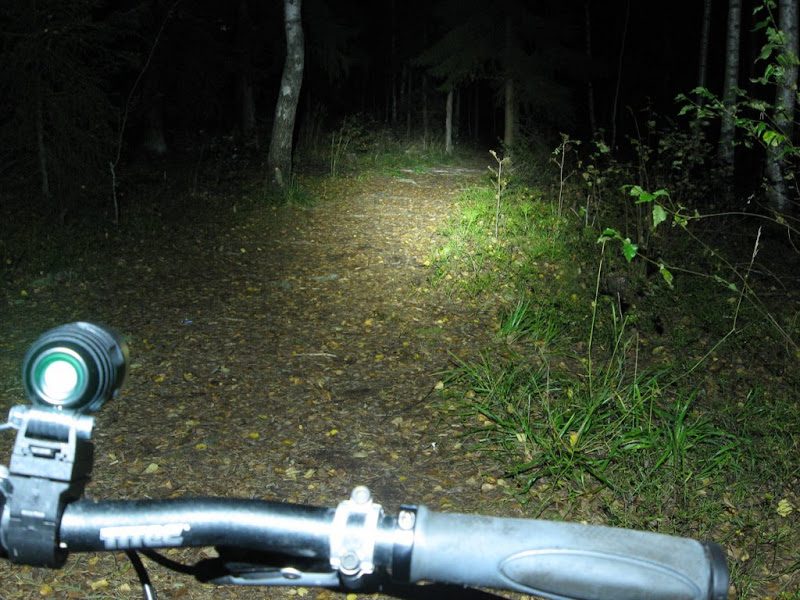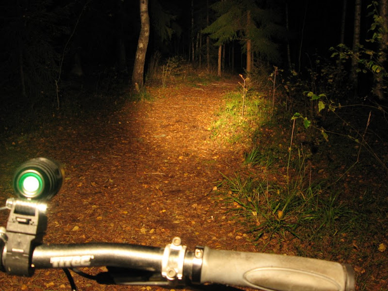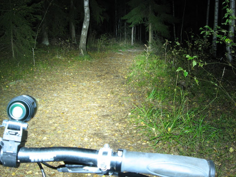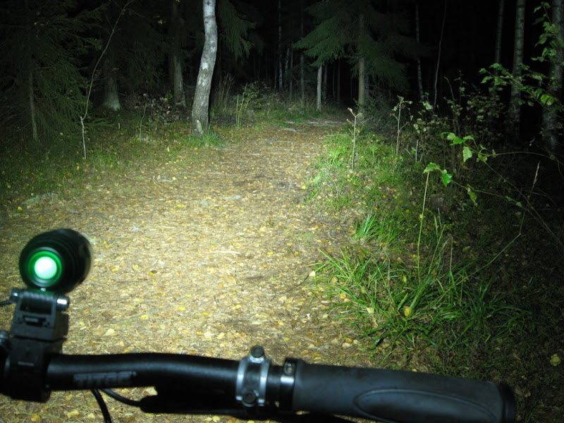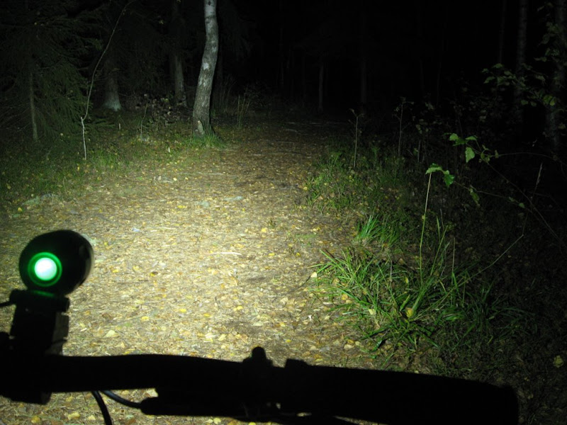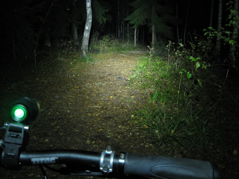 Valoina toimi super flässi(satulatolppa), Fenix Tk11 täydellä teholla(ohjaintanko) ja kypärässä Teslakopio(tehoa vaihdellen).