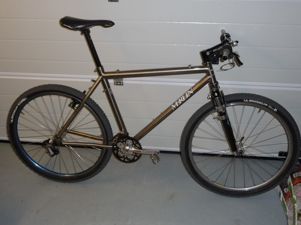 Projekti jatkuu, nyt 710 mm tanko ja 70 mm stemmi. Uudet jarrut. Uusi satula pitäisi hankkia, kun nykyisestä on kiskot nuudelia. Hauskaa on ollut.