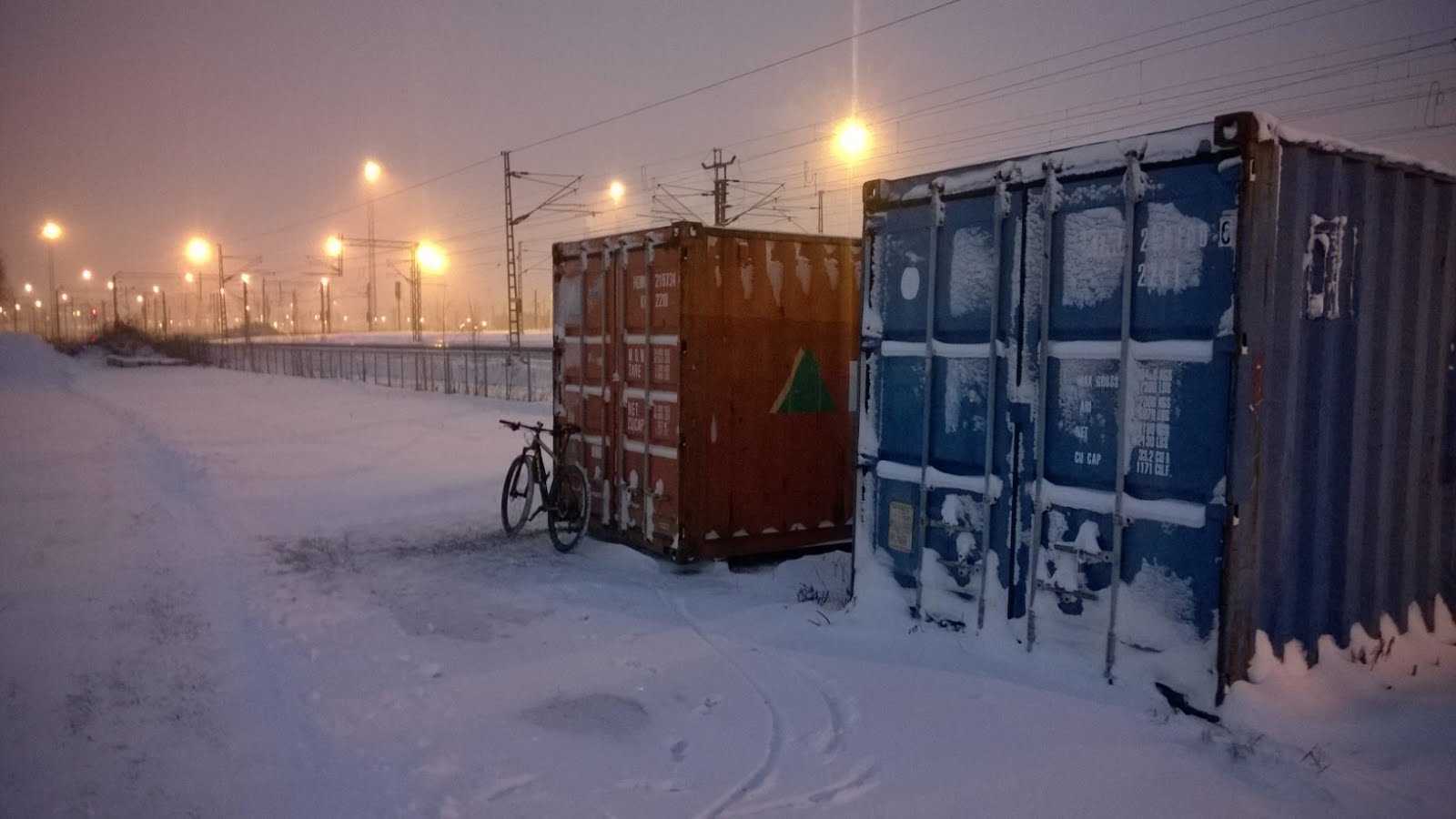 Täältä näkee, että tuohon kulmaan pääsee fillarilla. Uusi lumi teki sen, että ite jouduin hieman tunkkaamaan.