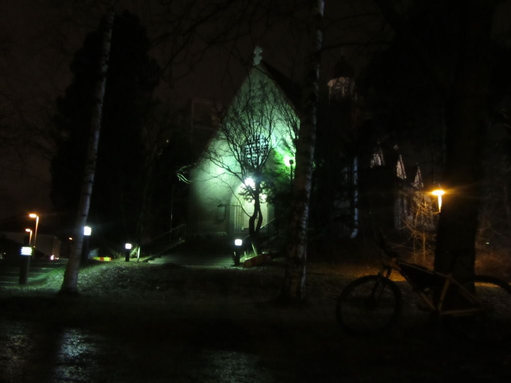 Kirkko/Kappeli Koskelan sairaalan alueella. Rasti 1077.