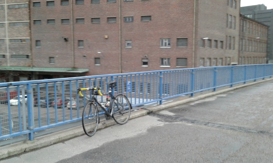 Näytti ainakin kovasti Helsingin Myllyn korttelilta http://www.myllarin.fi/helsingin-myl...ly_rajattu.jpg Sörnäisten rantatien ja Kaikukadun kulmassa. Rakennukset osin vanhoja, toimistoiksi muutettuja, ja osin uusia. jalankulkusilta edustaa aitoa 60-luvun lopun liikenneajattelua.