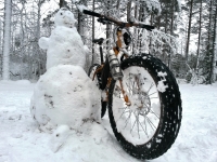 Vihdoinkin kunnolla lunta. Kyllä ajo jonkin verran raskaammaksi käy, kuten myös pyörä kerätessään lunta. Kaveri lähti lenkin puolihuitteilla kapokumilla mukaan. Vähän sai tehdä polkujen eteen duuniakin, oli mennyt muutamassa kohtaa puuta nurin.