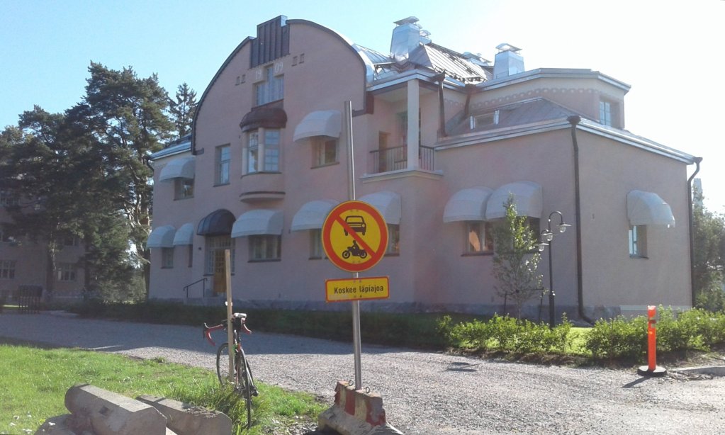 Tämänpäiväisen lenkin alkumatkalla tulin spontaanisti siihen tulokseen ettei absoluuttisessa kuvarastitauossa ole mitään mieltä, se on yhtä typerä ajatus kuin kuvarastilakkokin:rolleyes: Sitä paitsi vaikka tiesin ja tunsin kuvista Tikkurilan Ånäsin tilalle perustetun maanviljelystaloudellisen koelaitoksen jugendhenkiset laboratoriorakennukset en ollut aiemmin käynyt niitä katsomassa. Joten sanoin itselleni "Never say never" ja hain 691. rastin: