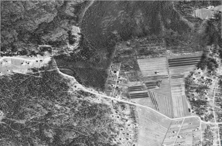 Koska olen ikävä ihminen, annan seuraavaksi vihjeeksi Vantaan karttapalvelusta nyysimäni ilmakuvan vuodelta 1954: