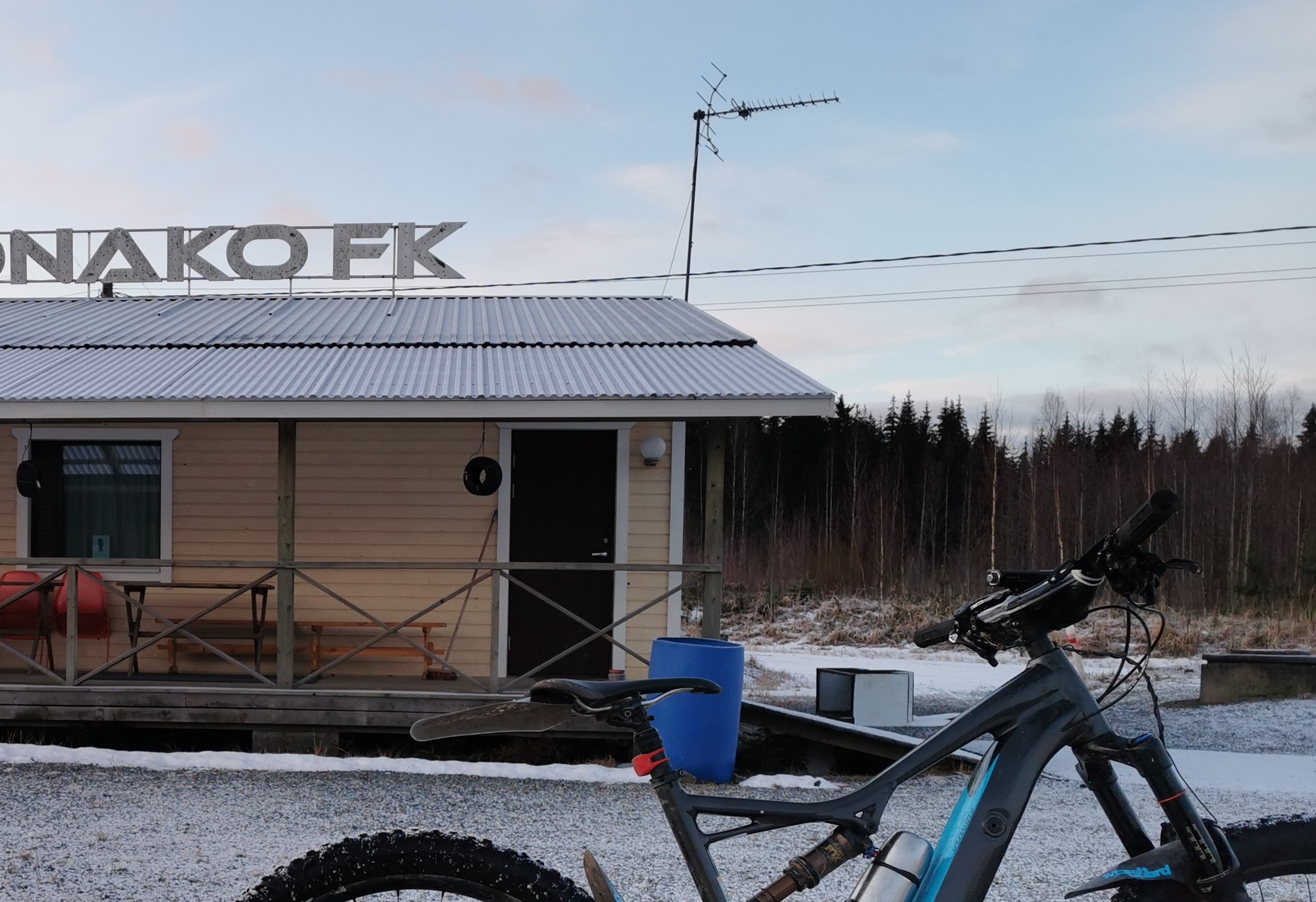 ^onks tuolla fillari jossain jos tarkkaan katsoo? Tuon kuusen juurella?