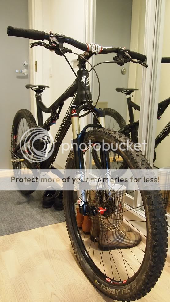 Reklamaationa 100mm xc-rungon tilalle saatu 120mm trail-runko, joten osat myös sen mukaiset. Keulan pidennyskään ei tuossa mallissa onnistunu. Saa nähä mitä tulee. Satulatolppaa ja täysmittaista vaijerinkuorta kaipais etuvaihtajalle.
