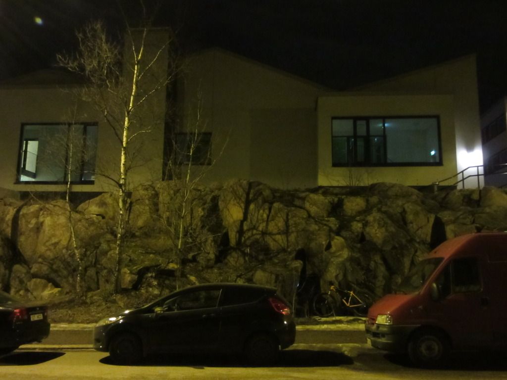 Kun kaupunginosasta oli valistunut arvaus ja kun haki sopivan kallioleikkauksen Karttapaikasta, loppu oli pelkkää ajamista. Helsingin Yliopiston kansainvälisten opiskelijoiden asuntola, peruskorjaus ja uudisrakennus SARC-arkkitehdit 2013. Entinen Pihlajamäen vanhustentalo, Lauri Silvennoinen 1968.