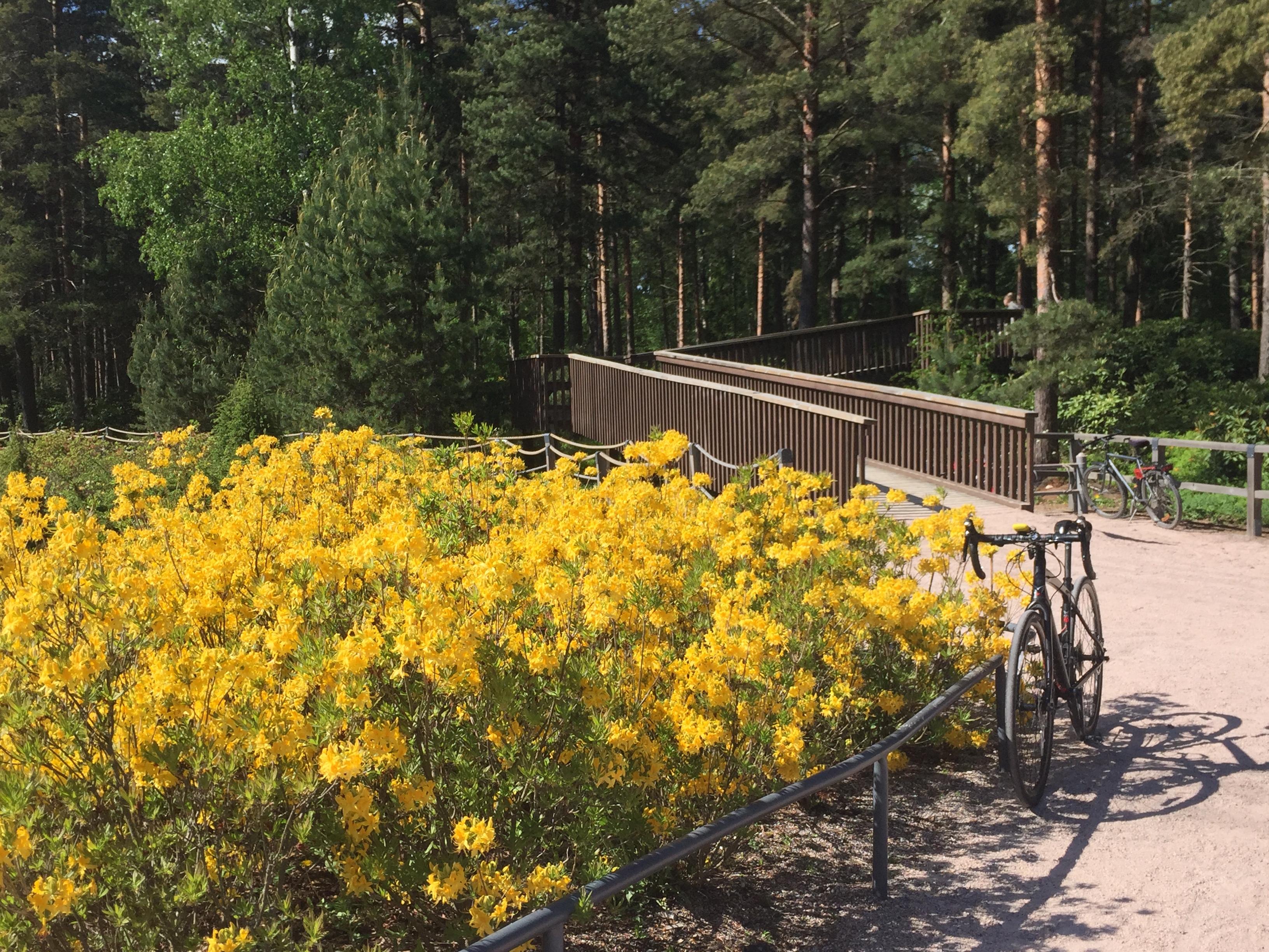 Ihan vielä ei ollut Haagan alppiruusupuiston rodot kukassa: