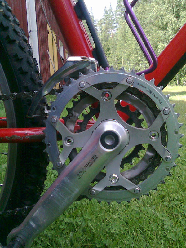Täydellä XT m737 osasarjalla ja kaikki alkuperäisosia paitsi ohjaustanko (ainakin minun tietääkseni). Vaijerit ja ketjut tietysti vaihdettu myös. Vuosimalliksi arvailen 1994 tai 1995. Jos joku tietää paremmin niin kertokoon...