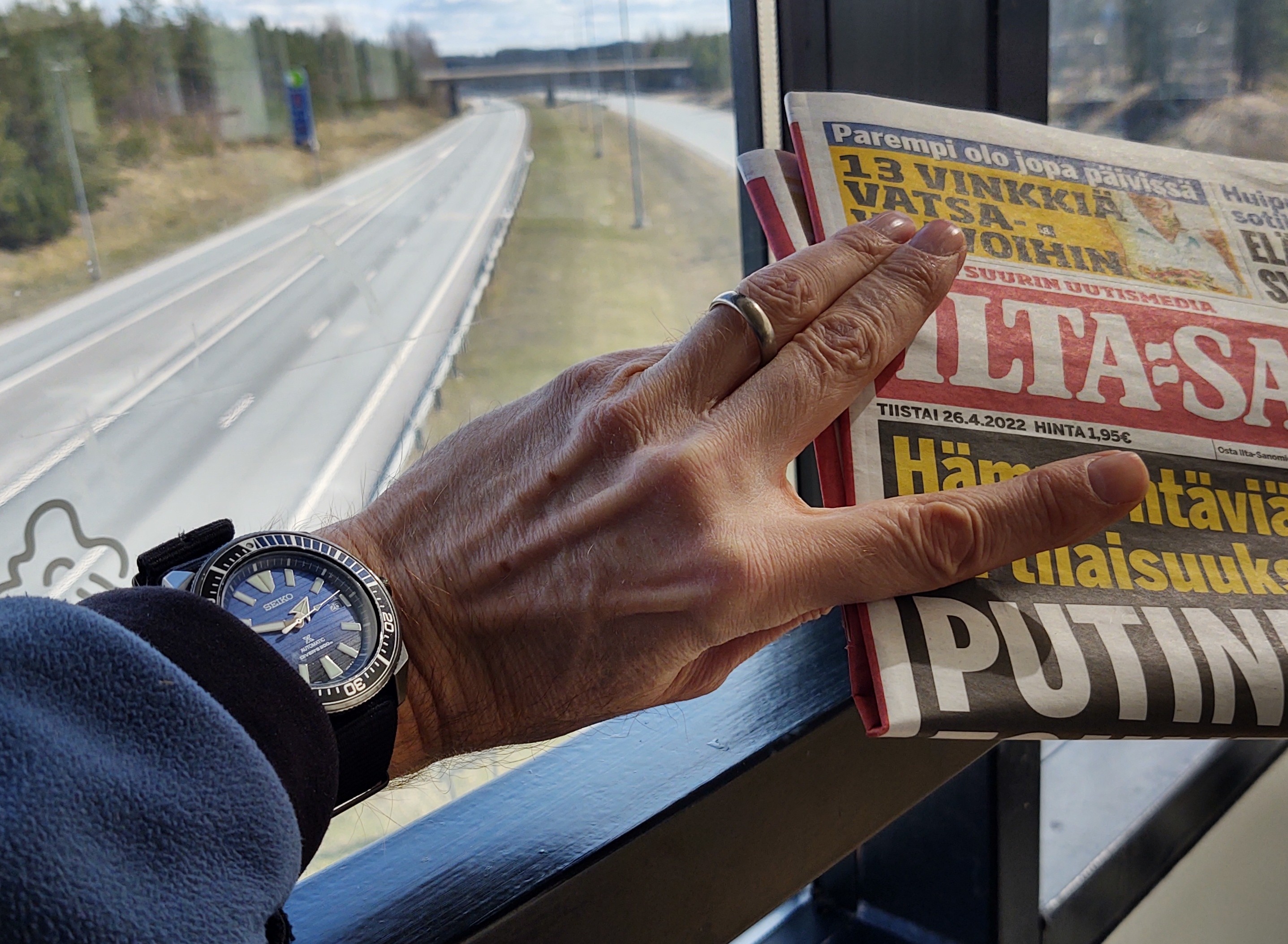 Hmm, totta. Mitenhän tuon ens kerralla sitten parhaiten todistaisi. Oman kellon kuvaaminen ei ole luotettava varmuudella. Senhän voi asettaa mihin vain aikaan ja päivään. Ehkä toisesta puhelimesta ylen suora tv-lähetys käyntiin Areenasta ja toisella videokuvaa sitten siitä ja pikaisesti video nettiin ja linkki sitten tänne. Mutta muutamankin minuutin viive ja olen saattanut jo oikeasti poistua Linnatuulesta saati sen vessasta. Teidän täytyy varmaan vain luottaa, että kuva tulee silloin sieltä. Olen yksin liikkeellä niin ei sitä vasta autossa jo eteenpäin ajellessa tule enää laitettua.