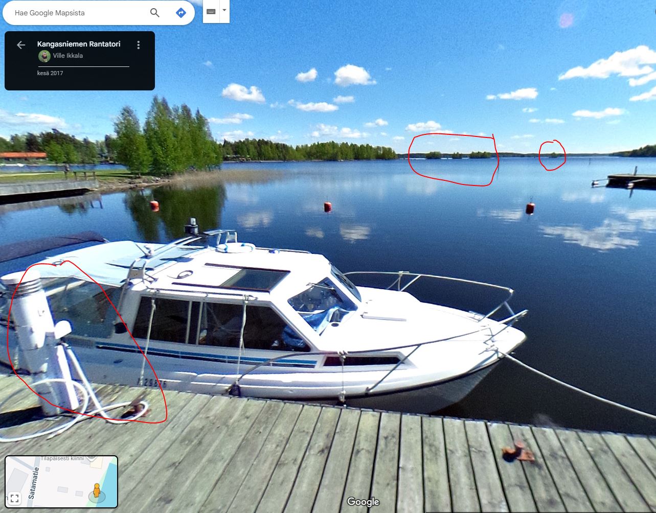 Tuota kehystä ei vuoden 2017 googlekuvassa näy, mutta laiturin laudoitus, vesiposti, pollarit, taustan saaret, viitoitus, istutuslaatikot ym. täsmäävät