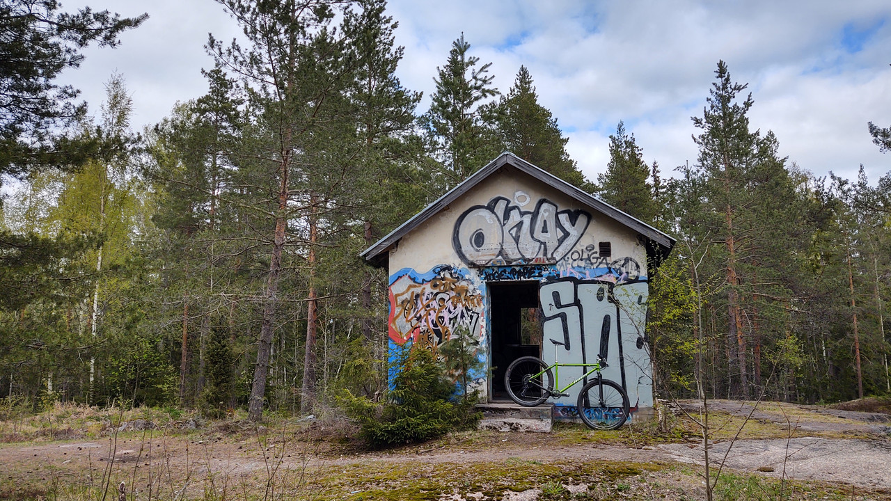 Vanha on mikä lie rauniohökkeli Keimolan radioaseman takamaastossa. Rasti 1082.