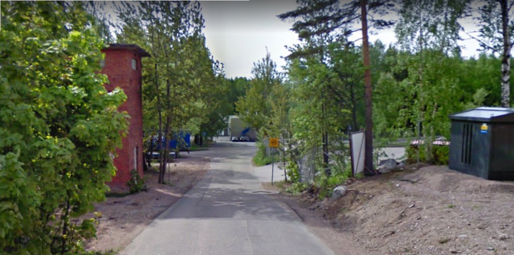 Kolmen pisteen vihje: ollaan vielä semmoisella mitä asemakaavassa sanotaan teollisuus- ja varastorakennusten korttelialueeksi, mutta tie vie asuinalueelle.