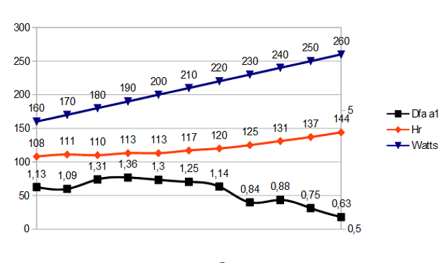Mikäli olen ymmärtänyt oikein DFA-a1 arvo lasketaan lyhyen aikavälin esim. 4-16 lyöntiä sykevälivaihtelusta käyttäen matemaattisia menetelmiä kuten fraktaaliteoriaa. Mikäli mä ymmärrän oikein tuota matemaattista analyysiä ja teoriaa sen takana niin DFA-a1 arvo kuvaa "epäjärjestyksen pienemisessä tapahtuvaa muutosta" sykevälivaihtelussa kun rasitus kasvaa. Levossa ihmisen sydämen toimintaa ohjaa tahdosta riippumaton hermosto ja sykevälivaihtelu (peräkkäisten lyöntien välinen aika) on enemmän satunnaista ilman säännönmukaisia rakenteita. Sitten kun rasitusta lisätään niin säännönmukaisuus kasvaa, aerobisella kynnyksellä tapahtuu säännönmukaisuudessa muutos joka pystytään matemaattisilla menetelmillä ja teorioilla löytämään.