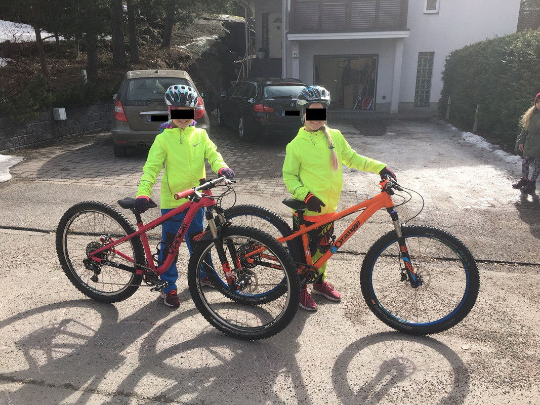 Vasemmalla Vpace MAX26 9-vuotiaalla, 132cm pitkällä kuskilla. Oikealla Orange Zest 26 11-vuotiaalla, 139cm pitkällä kuskilla.