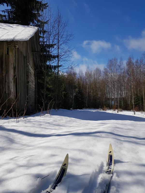 Eiliset lumet suli, yöllä satoi uusi lumipeitto joka aamupäivän kasvoi. Kymmenen senttiä, enemmän kuin kertaakaan koko talvena. Tämä sään uusi normaali on kyllä peräreiästä. Luultavasti kesällä on sitten syyskelit, syksyllä tulee intiaanikesä ja ensi talven sataa taas vettä. Tai jos tuliskin siperiatalvi. No pääs sitten hiihtämään, toista kertaa tänä "talvena".