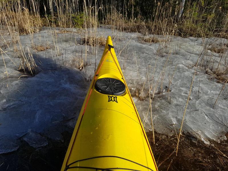 Tulihan avattua kausi. Vesi +7, ilma enintään saman verran ja kevyttä sadetta. Kokeilun vuoksi 5 mm mittatilauksena tehty sukellusmärkkäri päällä. Hyvin onnistui melonta sillä ja lämpöä riitti. Melontatossut ei riitä uintiin, pitäisi laittaa myös neopreenisukat ja ehkä -hanskatkin voisi olla tarpeen, jos pidemmän aikaa pitää vedessä olla. Mutta kun tuo puku on sellainen makkarankuori, jota ei ilman liukkaria saa päälle puettua ja silti melkein tarvitsee kaverin, taitaa minun ratkaisu olla odottaa vesien lämpenemistä.