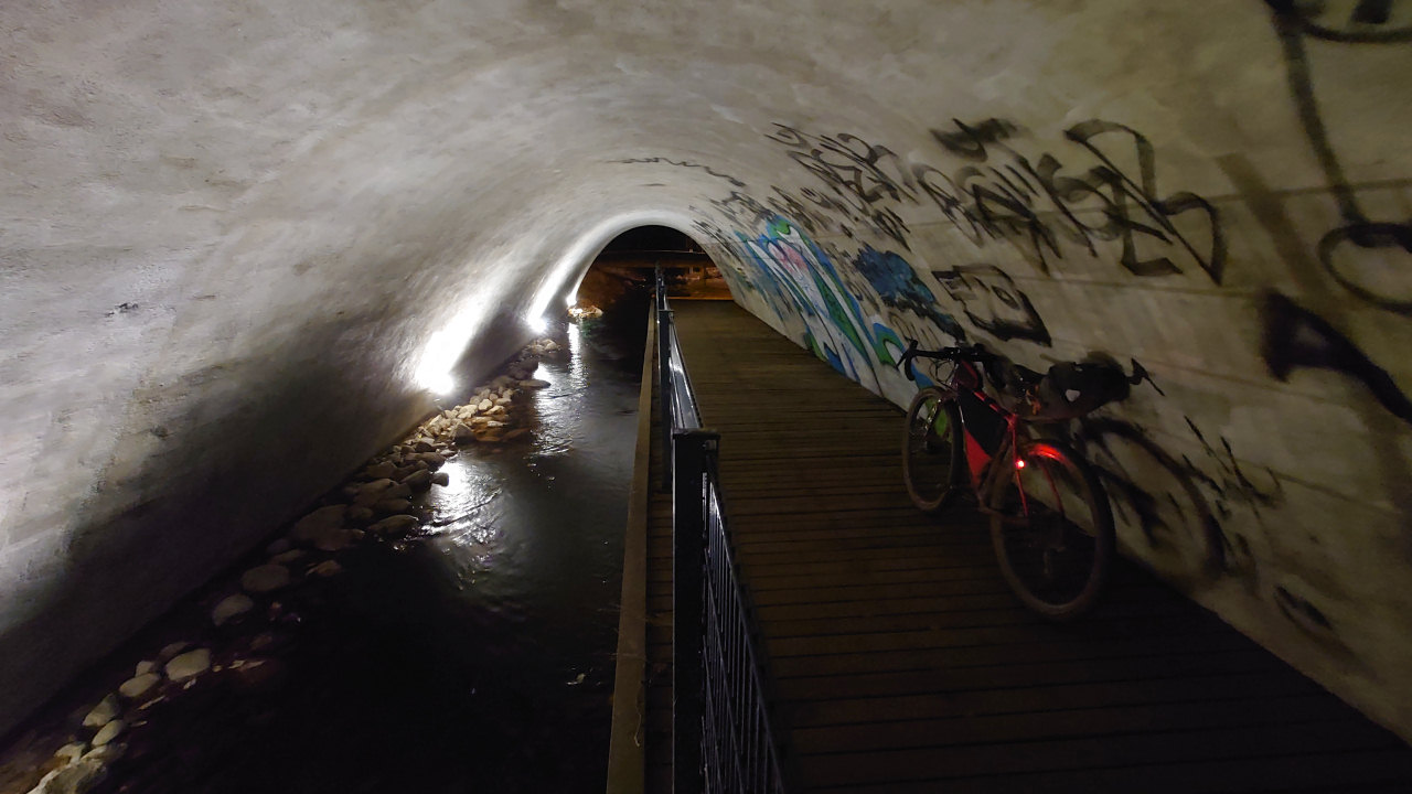 Itse veikkaisin graffitien perusteella Imatrankoskentien alittavaa tunnelia