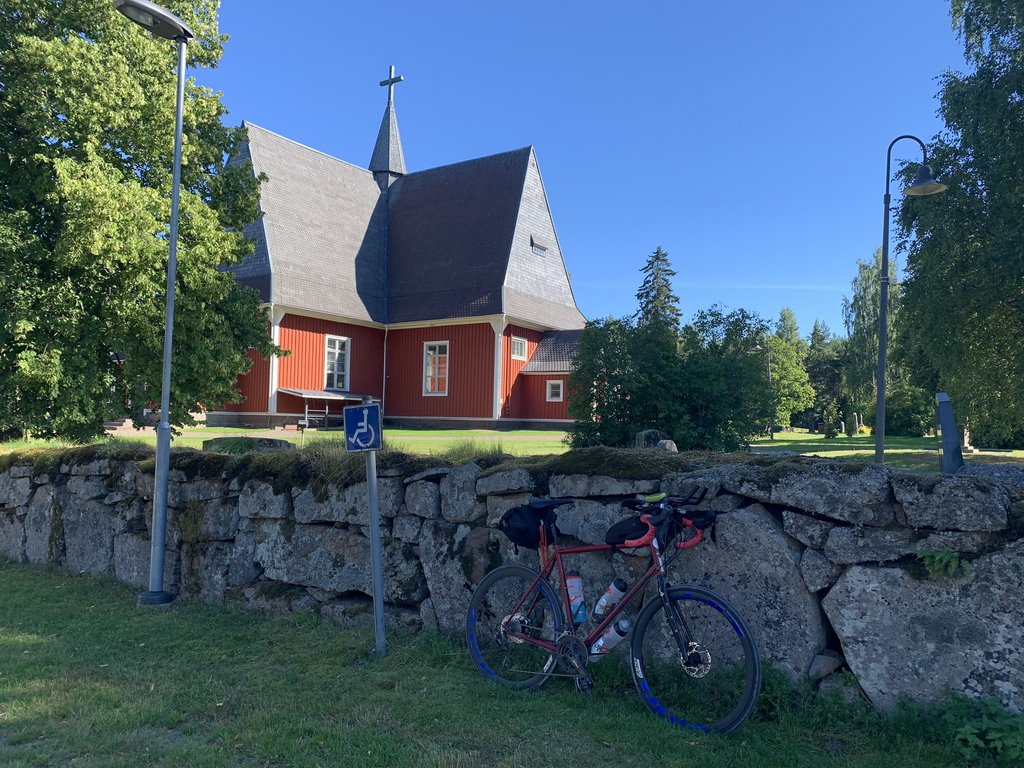 Onkohan tämä nyt Iitin kirkko .. tuolla joku fillarikin näkyy invapaikan luona