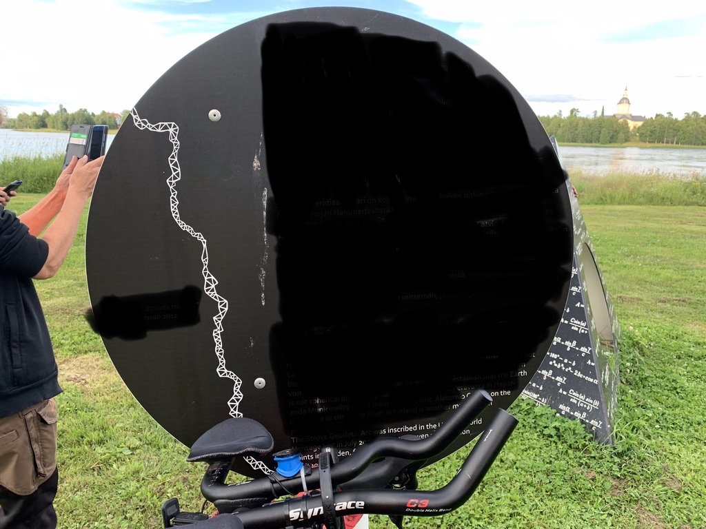 Vanha on Struven ja Struven ketjun muistomerkki, taustalla saattaa olla Alatornion kirkko. Rasti siis ilmeisesti on juuri tuo kirkko ja Struven ketjun piste, koska muistomerkki on ymmärtääkseni jossain muualla kuin koko Suomessa.